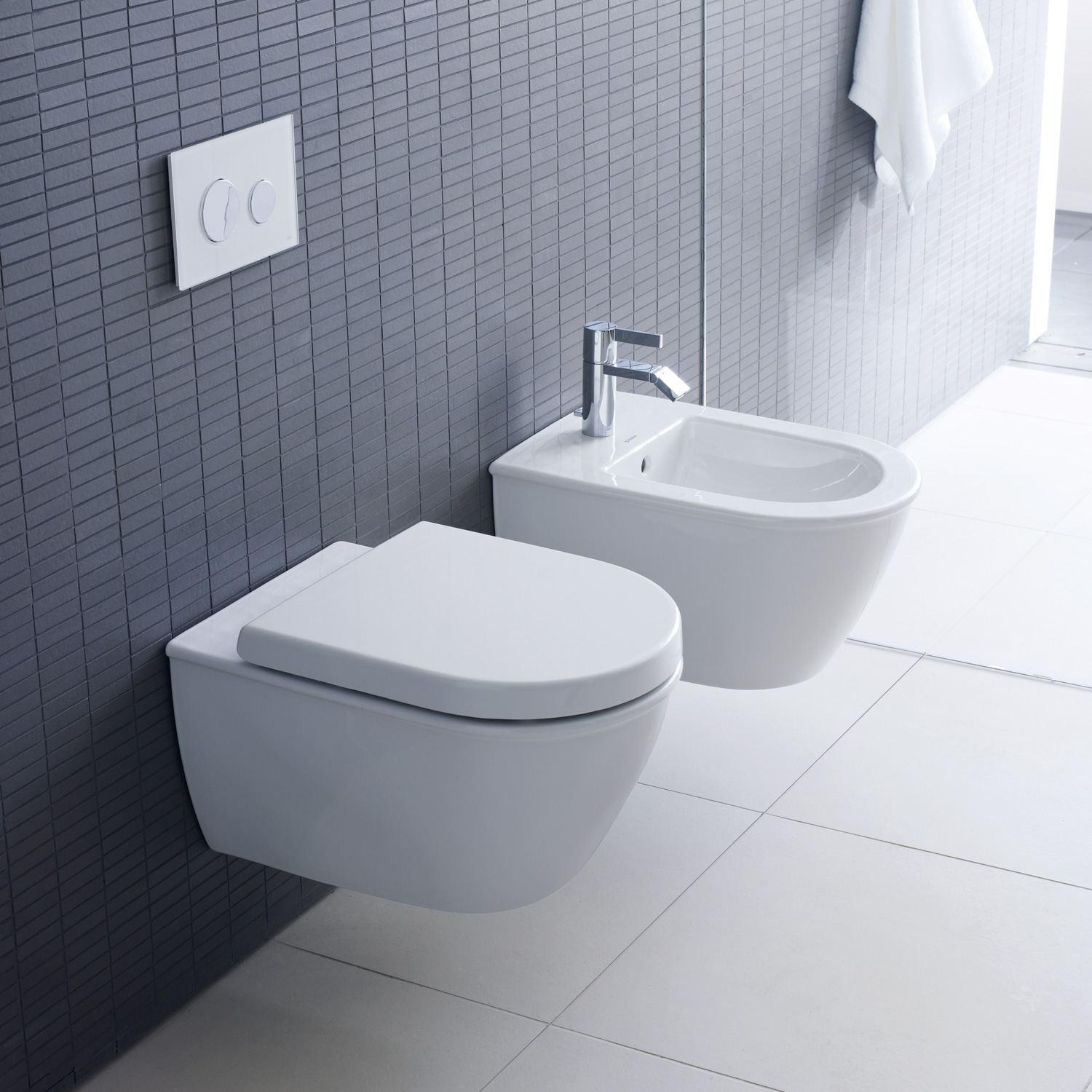 Унитазы и биде серии Darling New доступны как в отдельно стоящем, так и в настенном исполнении. Отдельно стоящие унитазы также доступны с установкой спиной к стене. Настенные унитазы Darling New с закрытыми боковыми панелями особенно элегантны и не имеют видимых точек крепления благодаря запатентованной системе Durafix. Настенные унитазы также доступны в различных размерах, поэтому вы найдете подходящее решение для каждой ванной комнаты. Антибактериальная керамическая глазурь HygieneGlaze и сиденье для унитаза-биде SensoWash® Slim помогают обеспечить высочайший уровень гигиены вокруг унитаза. Также доступны сиденья для унитазов с медленно закрывающимися крышками.
