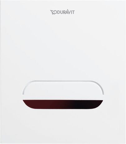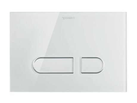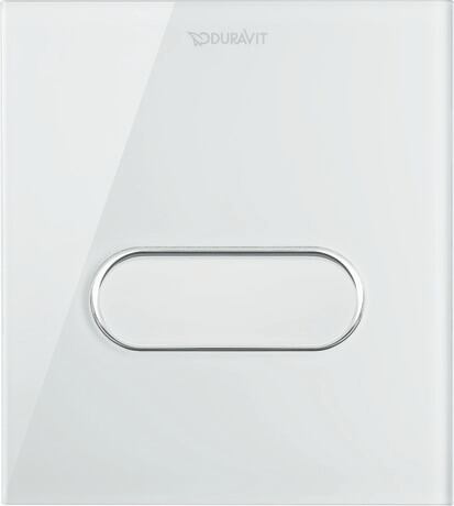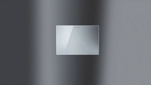 Электронная кнопка активации унитаза A2 изготовлена из белого закаленного безопасного стекла и монтируется на поверхность. Табличка не подсвечивается в режиме ожидания. Инфракрасный датчик активирует подсветку символов, когда они обнаруживают движение поблизости.