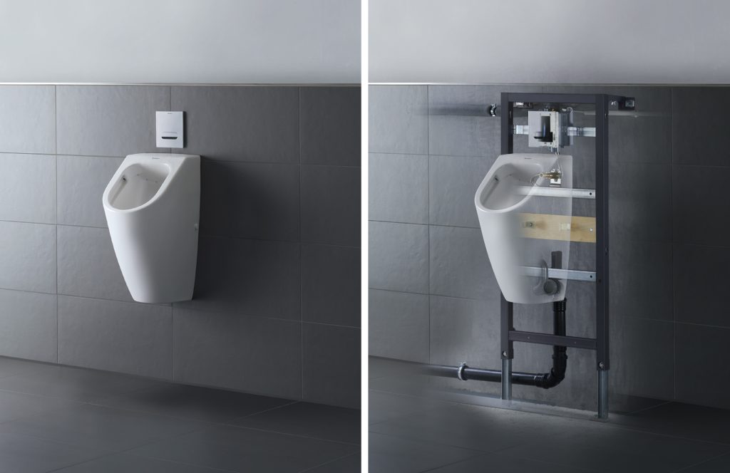 Для писсуаров доступны две системы установки DuraSystem®. Стандартную раму можно использовать как с писсуарами с накладными смывными клапанами, так и с безводными писсуарами или писсуарами с электронным сенсорным управлением.