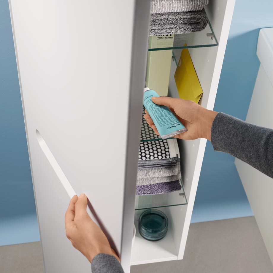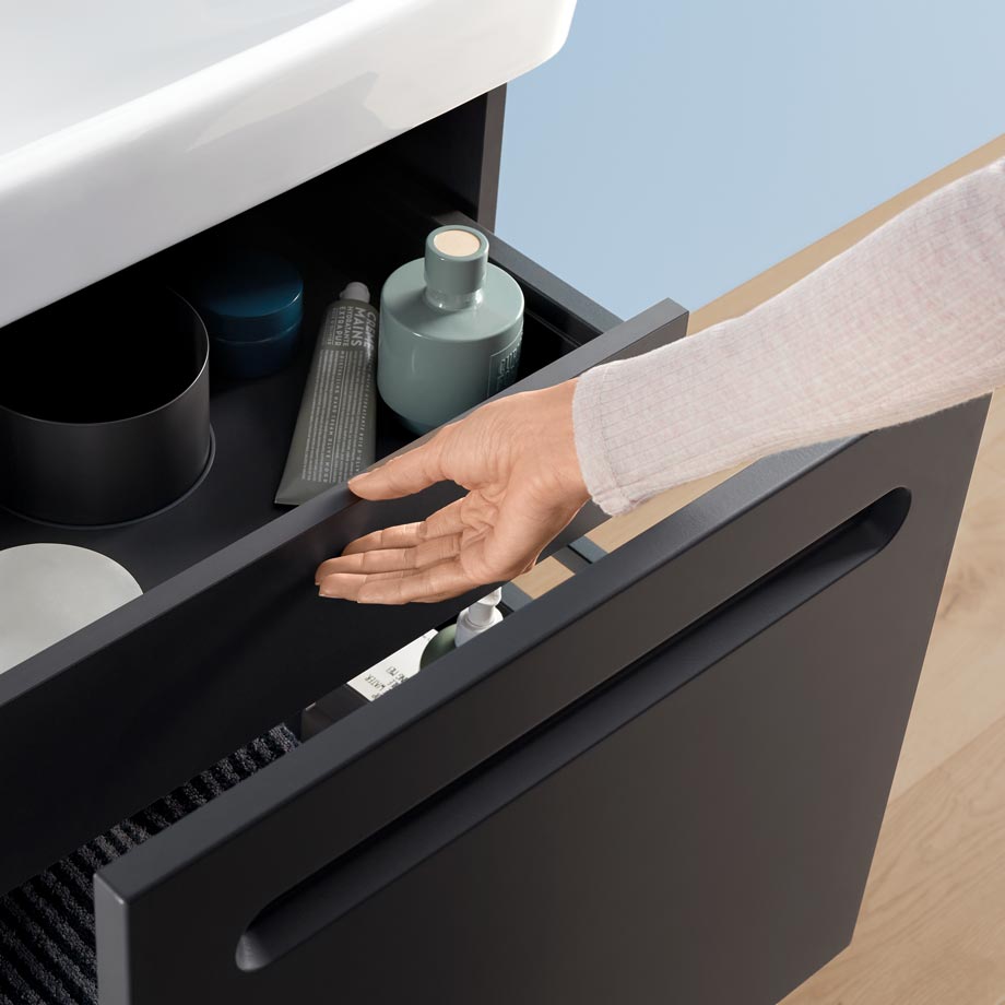 Шкафчики под туалетный столик и полувысокие шкафы Duravit No.1 оснащены встроенными ручками, благодаря которым их легко и удобно открывать и закрывать. На бесшовных фасадах, не имеющих кромок и зазоров, не скапливается грязь, поэтому их очень легко чистить. Туалетные столики опционально доступны с внутренними ящиками и дополнительными внутренними перегородками. Это сохраняет интерьер аккуратным и хорошо организованным, а также позволяет быстро находить мелкие предметы.