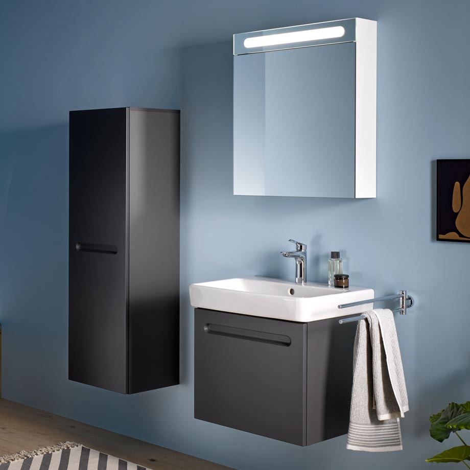 Соответствующие зеркала и зеркальные шкафы с долговечными энергосберегающими светодиодными светильниками завершают общий вид и производят большое впечатление своими изысканными деталями. Зеркальные шкафы Duravit №1 бывают с одной или двумя дверцами и встроенной розеткой и выключателем. Они обеспечивают удивительное количество места для хранения предметов личной гигиены, которые вы хотите, чтобы они были легко доступны, но не были видны.