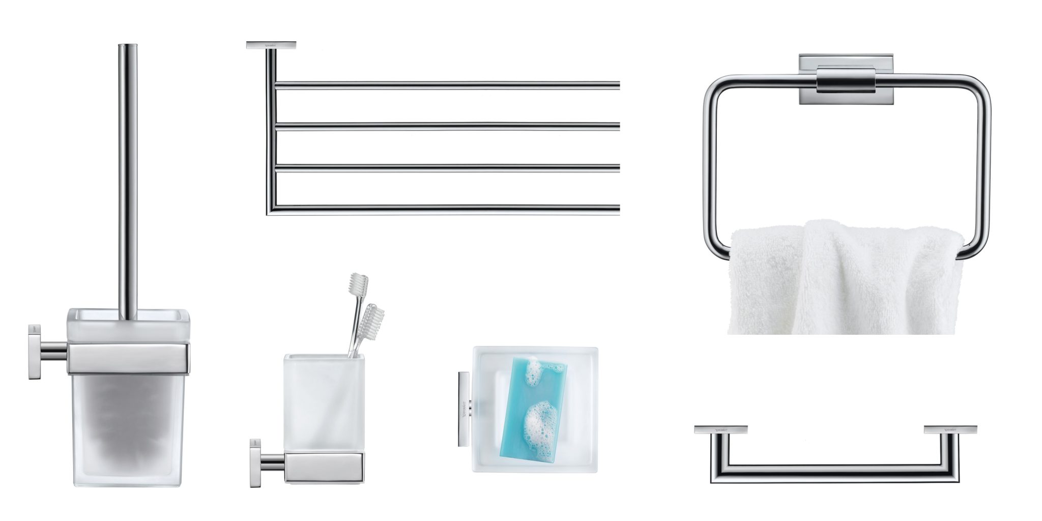 Высокое качество материалов и качество изготовления гарантируют долговечность: дозатор мыла изготовлен из выдутого вручную стекла, а держатель для полотенец, полка для полотенец и ручка ванны вырезаны под углом. А все предметы, требующие установки, можно быстро и легко прикрепить.