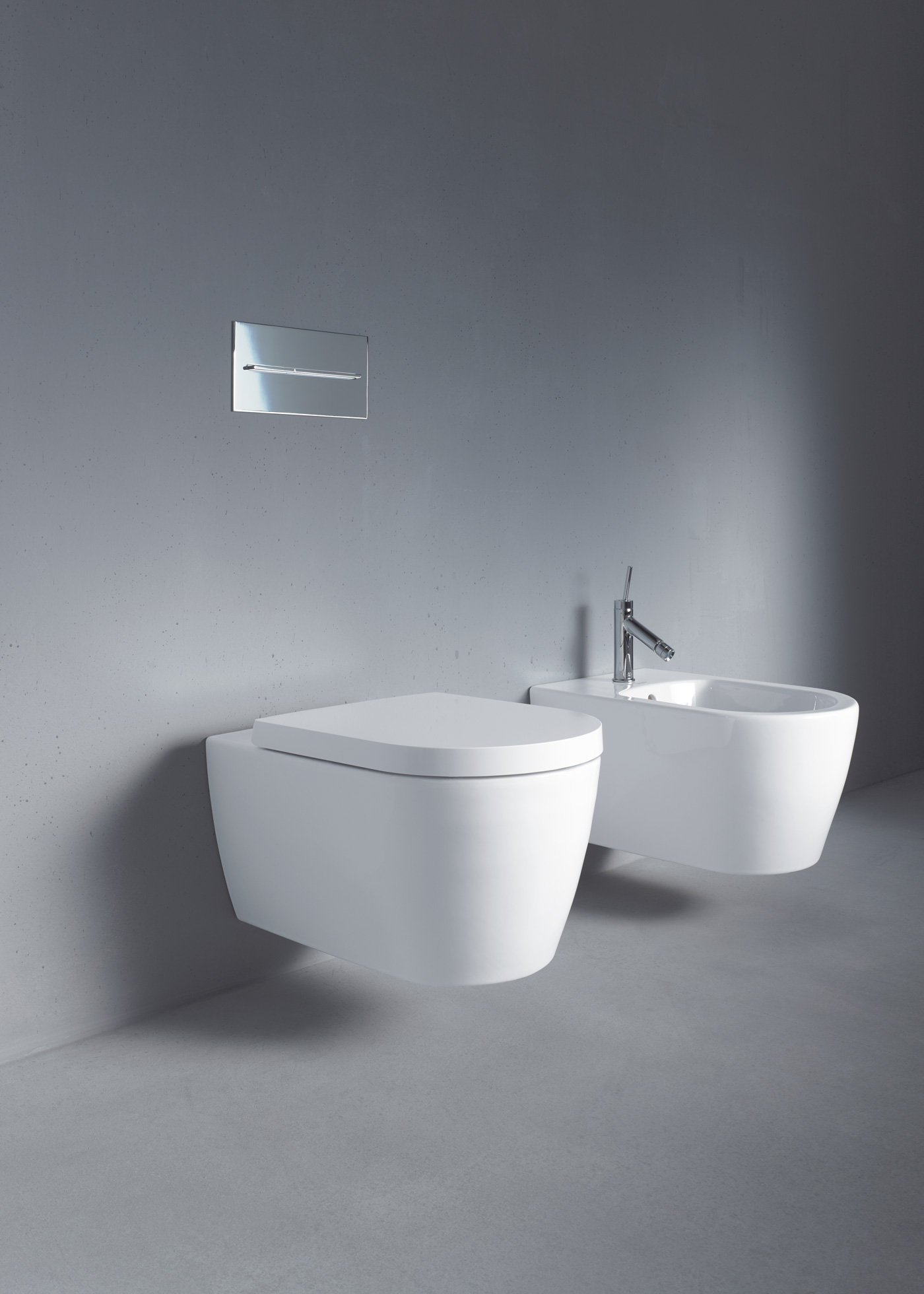 Унитазы Duravit ME от Starck доступны в настенном или напольном исполнении и оснащены различными технологиями смыва. Все наши унитазы объединяет оптимальная водосберегающая технология смыва и легкая конструкция. Настенный унитаз Rimless® ME by Starck впечатляет своей открытой конструкцией смывного края, которая оптимизирует поток воды, обеспечивая гигиенически идеальный смыв даже при небольшом количестве воды. Инновационная технология HygieneFlush использует чрезвычайно мощный вращающийся поток воды, который идеально очищает всю внутреннюю поверхность унитаза без каких-либо брызг. Унитазы серии ME by Starck можно крепить к стене с помощью системы скрытого монтажа Durafix.