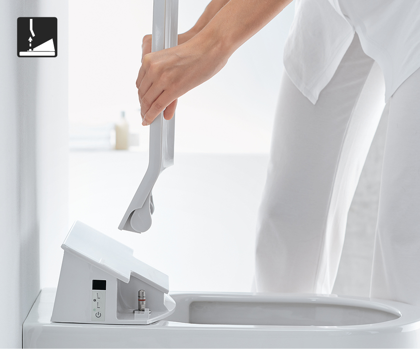 Использование SensoWash® D-Neo становится еще более комфортным, если вы активируете комфортный душ, при котором душевая штанга также перемещается вперед и назад во время использования RearWash или LadyWash.