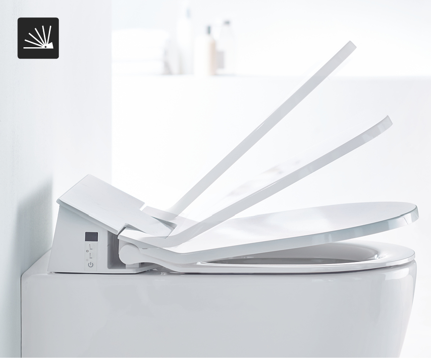 SensoWash® D-Neo от Duravit также удобен во всех отношениях благодаря функции медленного закрытия. Достаточно легкого прикосновения, и крышка унитаза закроется автоматически – мягко и бесшумно.