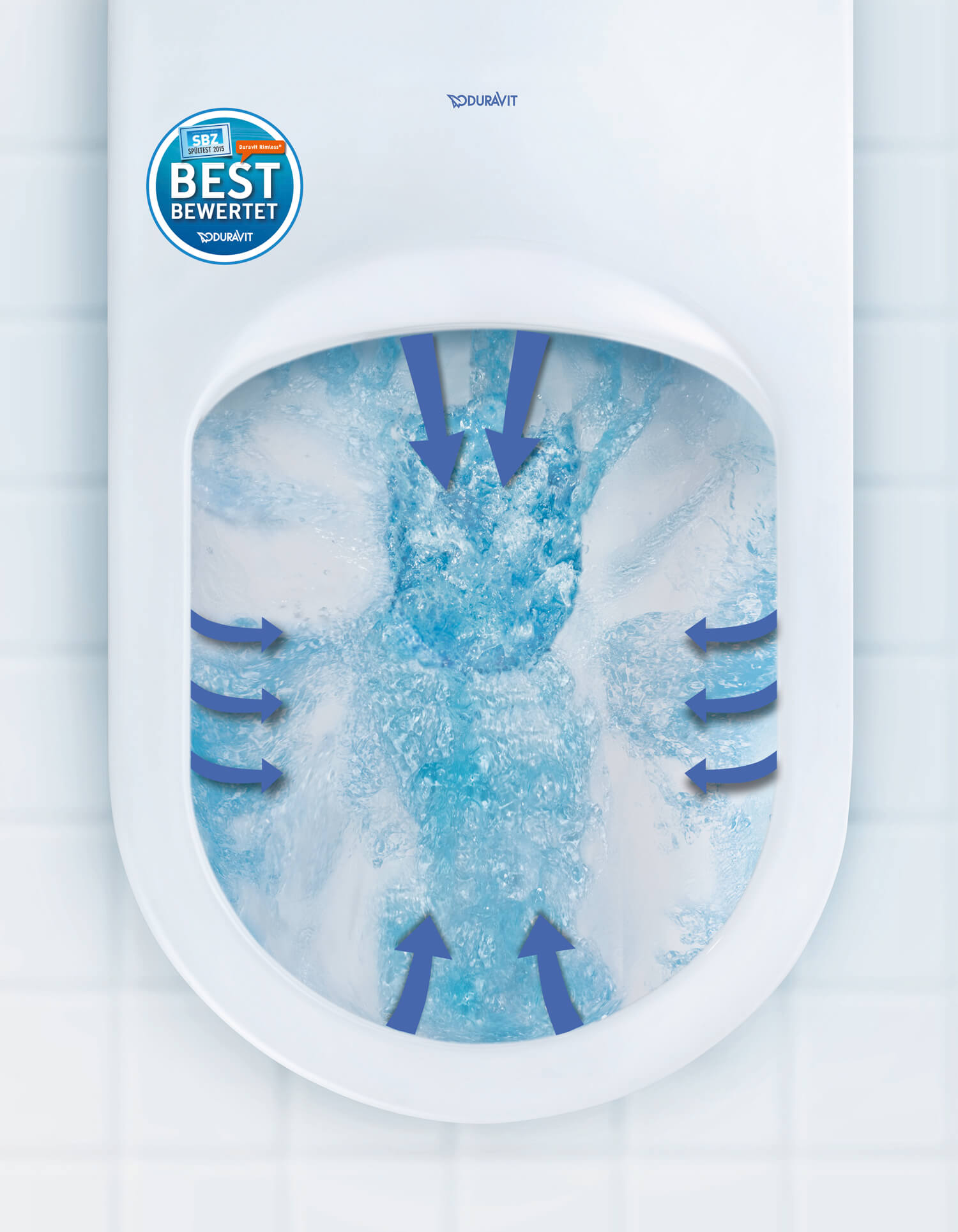 Технология смыва Duravit Rimless® гарантирует идеальный гигиенический смыв. Это возможно благодаря нашей открытой конструкции промывочного обода, которая полностью промывает внутреннюю поверхность чаши.