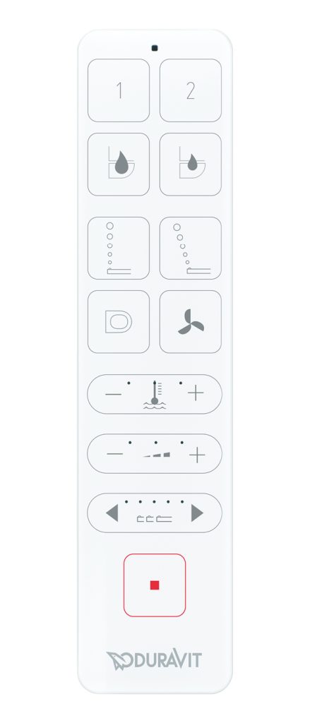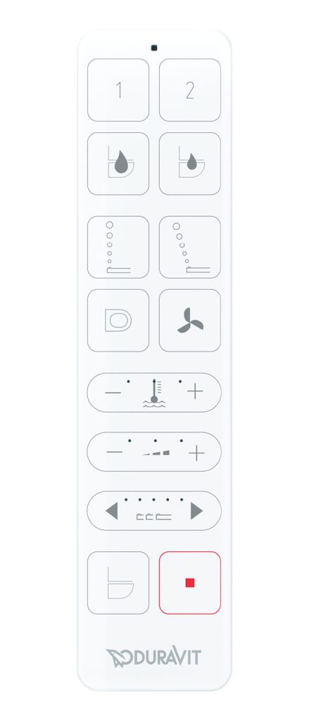 Пульт дистанционного управления SensoWash® Starck f удобно лежит в руке, а его плоская и элегантная форма соответствует чистому дизайну остальных моделей серии. Унитаз-биде можно настроить индивидуально с помощью приложения SensoWash® или управлять им с помощью пульта дистанционного управления.