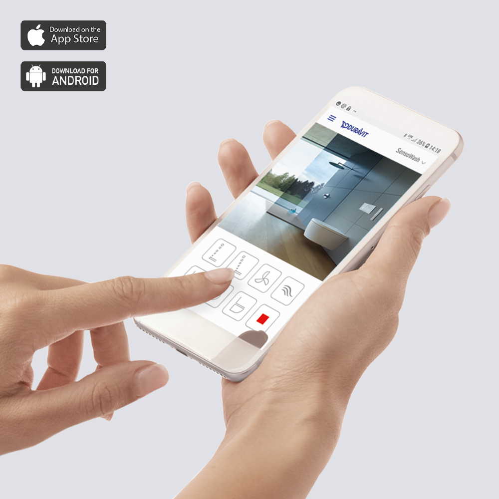 Эту дополнительную функцию можно использовать в сочетании с монтажным компонентом DuraSystem® и панелью смыва A2. Этим можно управлять с помощью пульта дистанционного управления или приложения Duravit SensoWash® Starck f Plus.