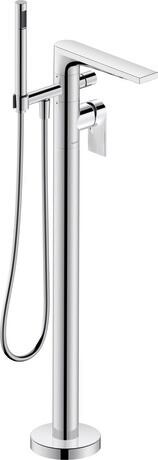 Отдельно стоящий смеситель для ванны является особой изюминкой. Благодаря встроенному держателю ручного душа ручной душ-палочка со шлангом и практичным элементом, предотвращающим вращение, можно прикрепить непосредственно к смесителю. Шланг обеспечивает равномерную и мощную дождевую струю. С помощью переключателя легко переключаться между изливом для ванны и ручным душем-стрелкой.
