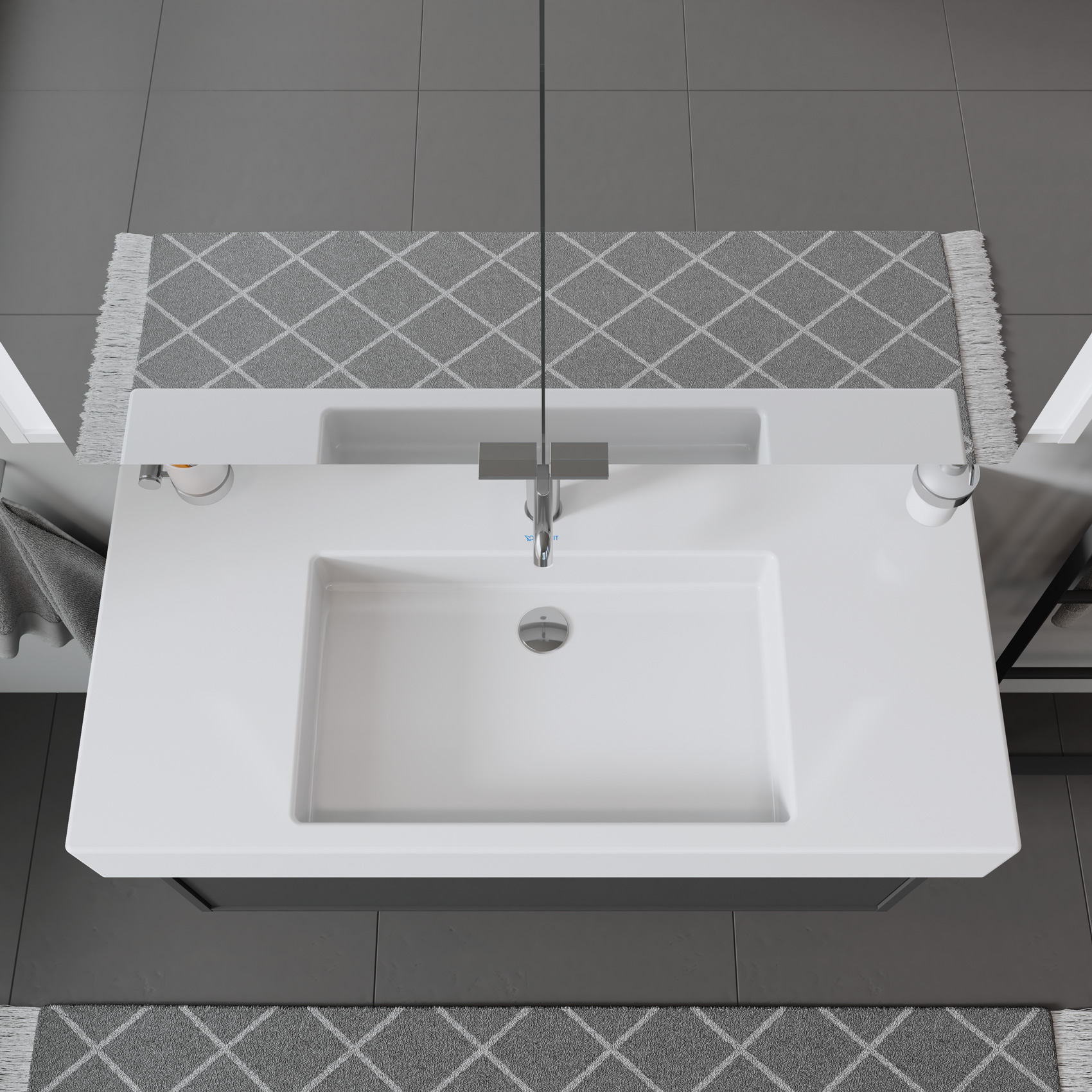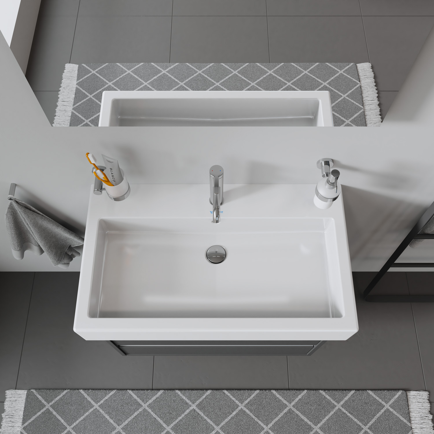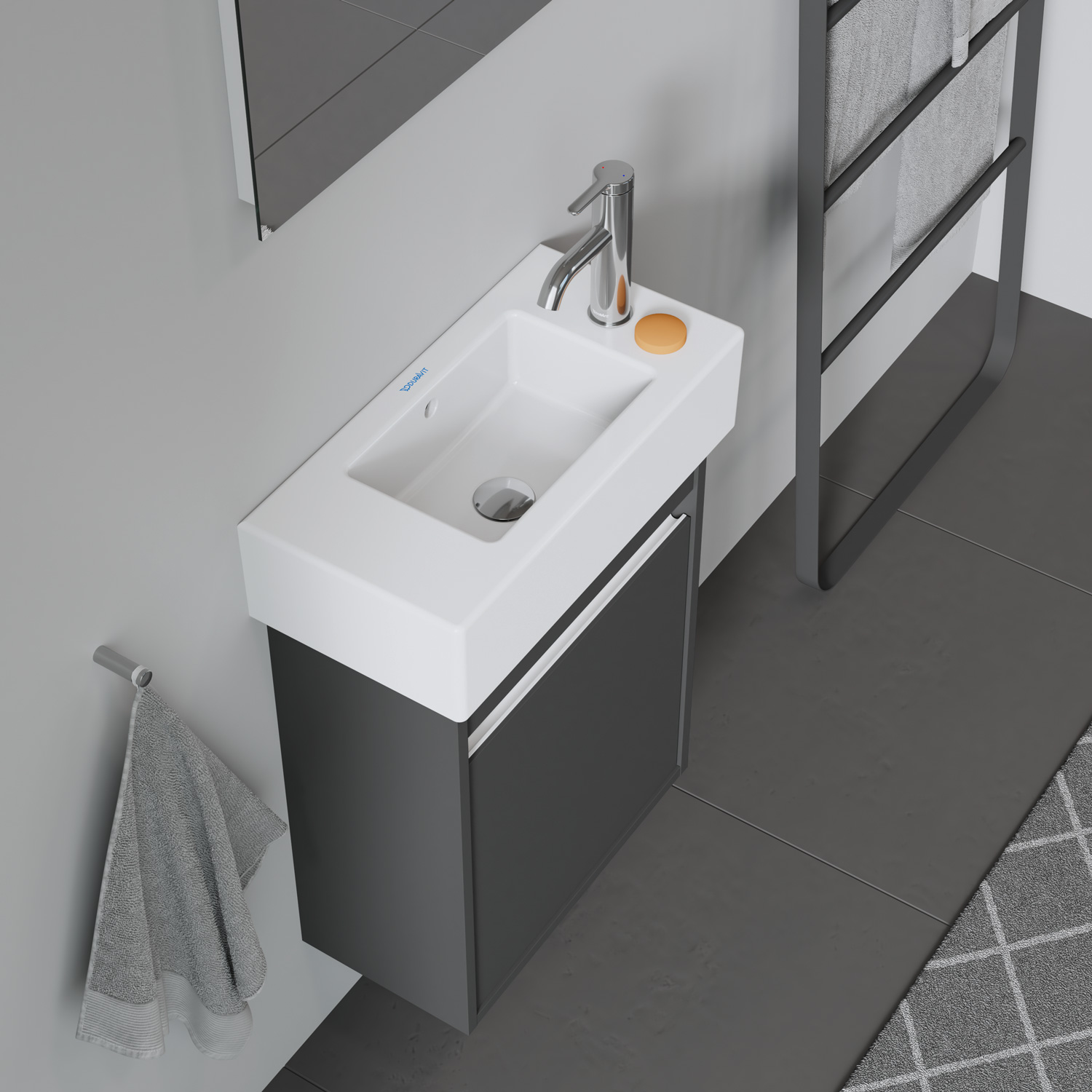Прямоугольная форма хорошо вписывается в помещения любого размера. Доступные в различных размерах, они также хорошо подходят для небольших помещений, таких как гостевая ванная комната. Раковины для мытья рук Duravit Vero доступны шириной от 10 до 20 дюймов (от 25 до 50 см) и в различных стилях: вдоль стены, со смесителем сбоку, с большей внутренней раковиной и с без полки.