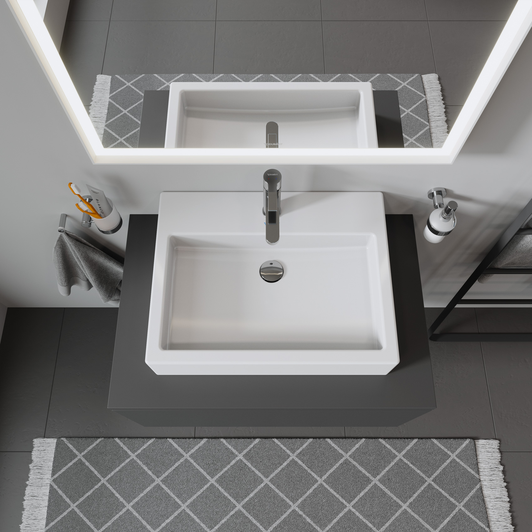 Duravit Vero и накладные раковины с консолями или столешницами представляют собой особенно домашнюю комбинацию: встраиваемая версия с подставкой под смеситель умывальник Duravit Vero вставляется сверху. Встраиваемый умывальник также можно вставить снизу в любой материал, который только можно придумать. Возможны самые разнообразные комбинации керамической серии Duravit Vero и шкафов под раковину.