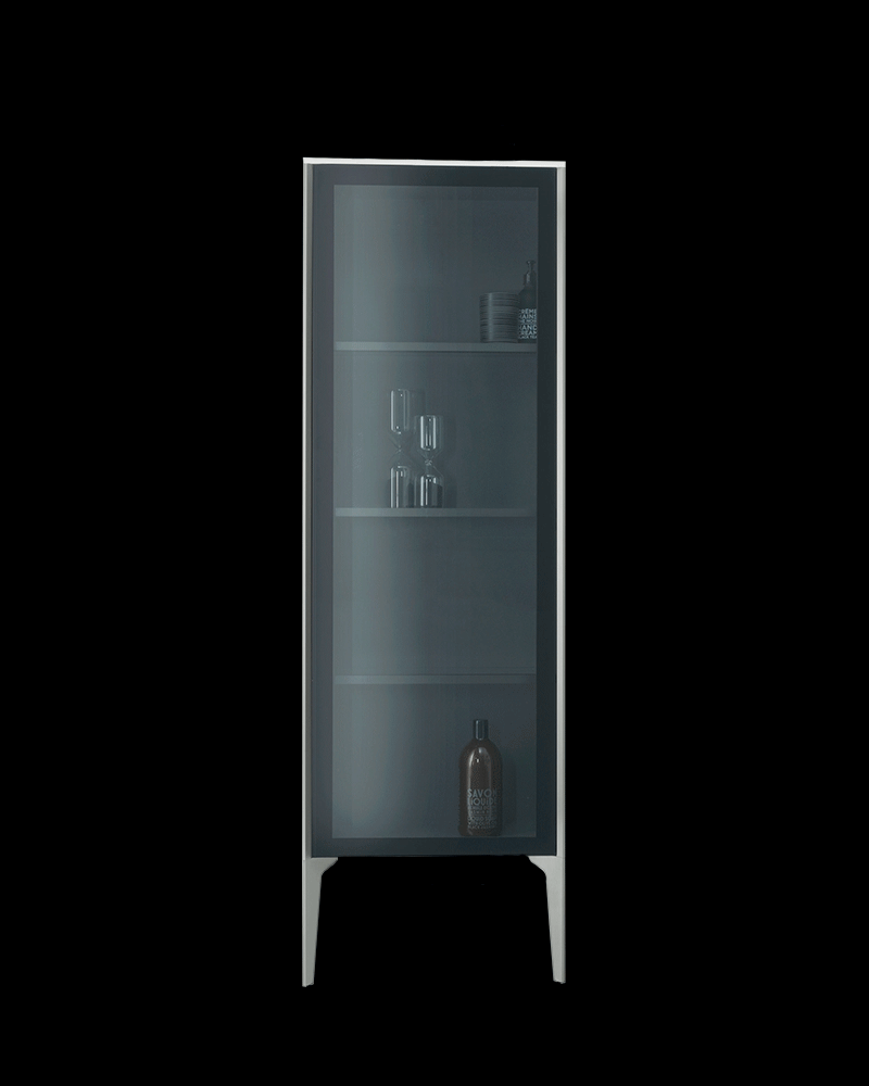 Привлекательное место для хранения: полувысокий шкаф XViu. Дверь из дымчатого стекла полупрозрачна, но при этом создает впечатление уединения. Технически оптимизированные, но визуально тонкие, гладкие петли используются для открывания и закрывания дверей.