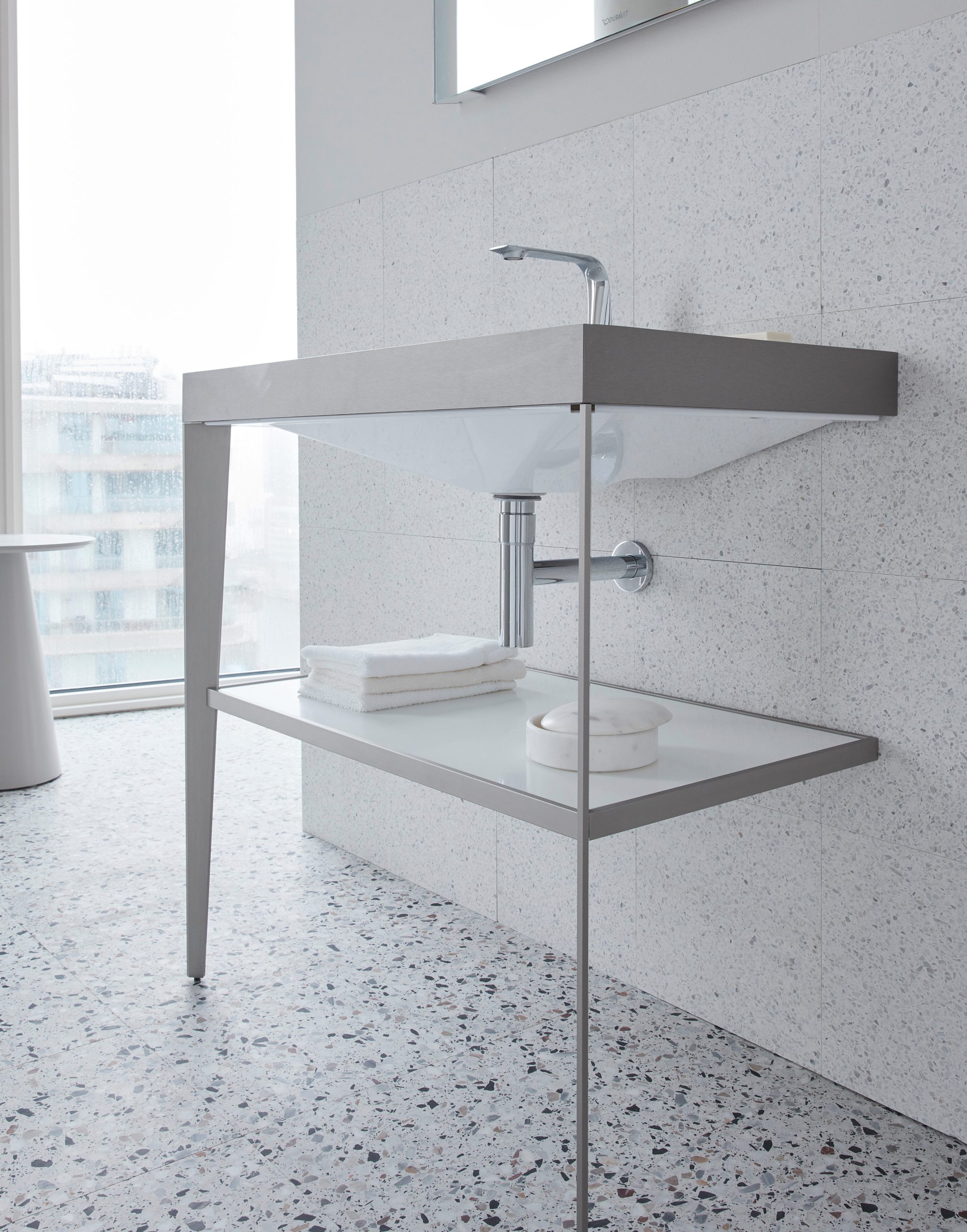 Запатентованная технология c-bonded объединяет керамику и металл в культовый внешний вид. Под другим углом трехмерные ножки металлической консоли визуально трансформируются в тонкие линии. Этот уровень совершенства распространяется вплоть до мельчайших деталей. Акриловая панель на нижней стороне раковины скрывает крепежную конструкцию, кабели и соединительные шланги, в результате чего сложная технология не влияет на дизайн.